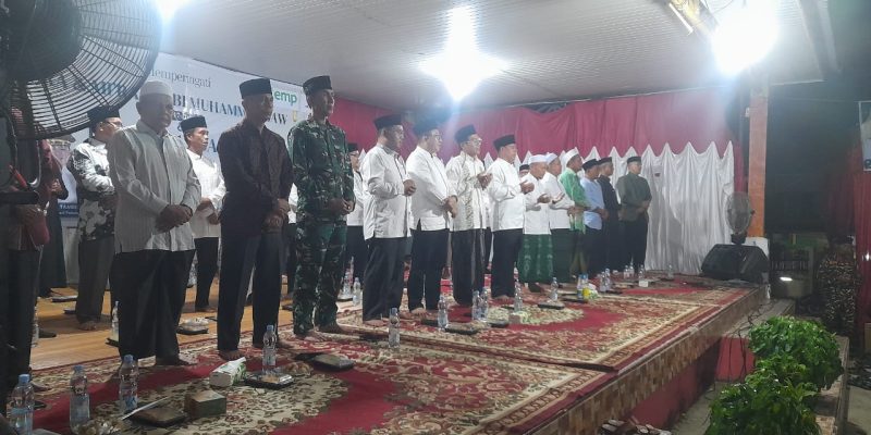 Pangkalan Kuras – Danramil 04/Pkl.Kuras  Kodim 0313/Kpr Kapten Inf Mawardi menghadiri kegiatan peringatan Isra Mi’raj Nabi Muhammad SAW sekaligus peringatan Hari Lahir (Harlah) 1 Abad Nahdlatul Ulama (NU) yang digelar di Halaman Kantor Camat Pangkalan Kuras, Kabupaten Pelalawan, pada hari Senin malam,(12/1/2026).