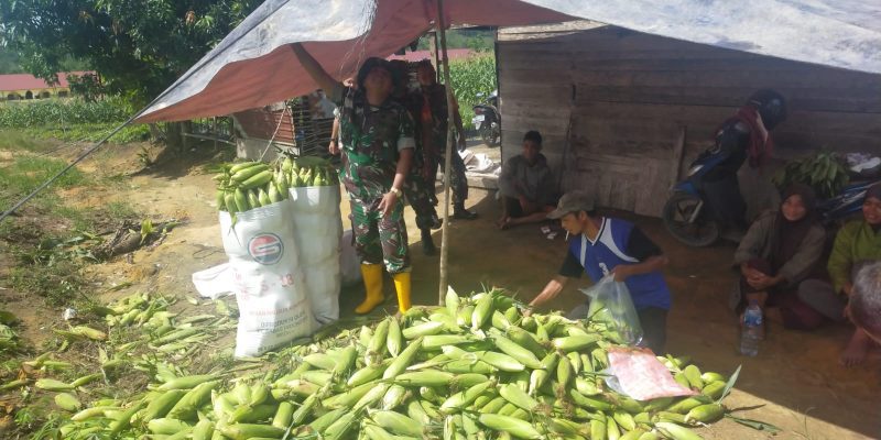 Danramil dan Babinsa Koramil 01/Bkn Bersama Poktan Panen Jagung Perdana
