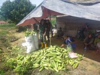 Bangkinang – Danramil 01/Bkn Kodim 0313/Kpr, Mayor inf H Yuhardi bersama Babinsa dan kelopak tani melaksanakan panen perdana Jagung manis Kelompok Tani, Desa Ridan Permai, Kecamatan Bangkinag Kota, Senin (03/10/2022).