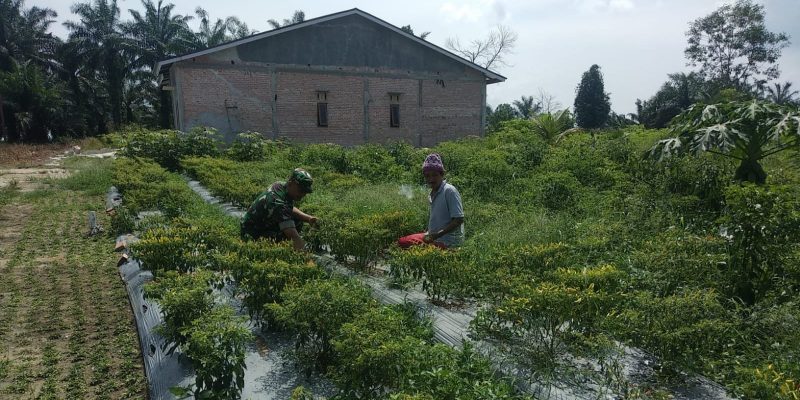 Pangkalan Kerinci – Babinsa Koramil 09/ Langgam Kodim 0313/ KPR Sertu Imron Budi Cahyono lakukan Komsos terhadap Petani Cabe dalam rangka ketahanan pangan milik Bapak Lamono bertempat di Desa Mekar Jaya Kecamatan Pangkalan Kerinci Kabupaten Pelalawan,Sabtu(12/08/2023).