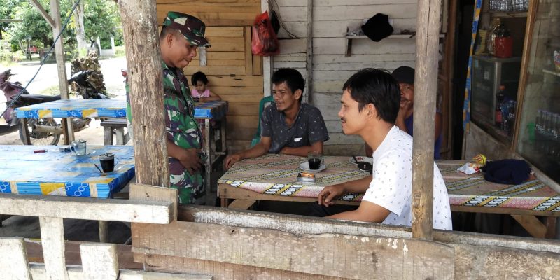 Salo – Babinsa Koramil 01/Bkn Kodim 0313/Kpr Serda Novianto, melaksanakan Komunikasi Sosial (Komsos) dengan masyarakat sambil menikmati secangkir kopi bersama di warung Bpk Arman di Desa Siabu, Kecamatan Salo Kabupaten Kampar, Jum’at (21/21/2022)