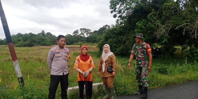 Rumbio Jaya – Guna mendorong program pemerintah soal ketahanan pangan (Hanpangan), Babinsa Koramil 07/Kampar Kodim 0313/KPR Koptu Wahyu Wibowo bersama PPL dari BPP Kecamatan Rumbio Jaya melakukan pengecekan lokasi persawahan tadah hujan dan sumber air di Desa Teratak, Kecamatan Rumbio Jaya, Kabupaten Kampar, Minggu (20/07/2025)