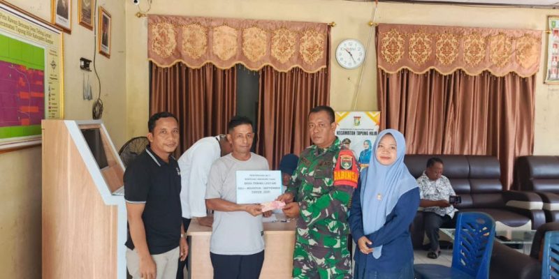 Tapung Hilir,- Dalam rangka memastikan penyaluran bantuan berjalan lancar, Sertu Endi Suparto Babinsa Koramil 16/Tapung Kodim 0313/Kampar turut melakukan pendampingan dalam kegiatan pembagian Bantuan Langsung Tunai Dana Desa (BLTDD) yang diselenggarakan dikantor Desa Tebing Lestari Kecamatan Tapung Hilir Kabupaten Kampar. Kamis (27/11/2025).