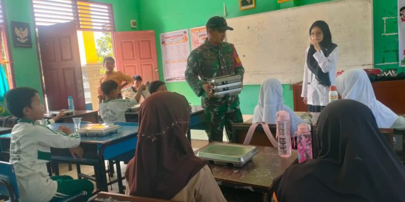 Babinsa menjelaskan bahwa kegiatan pendampingan MBG ini bertujuan agar kegiatan tersebut berjalan dengan lancar pembagian makanan sekaligus memberikan edukasi kepada para siswa mengenai pentingnya pola makan sehat.