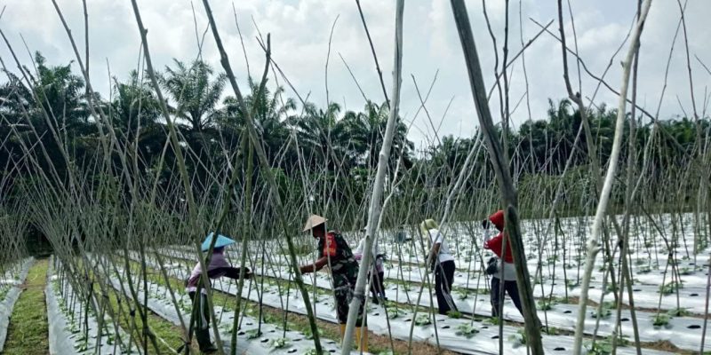 Dukung Program Swasembada Pangan, Babinsa Koramil 16/Tapung Bantu Rawat Tanaman Kacang Panjang