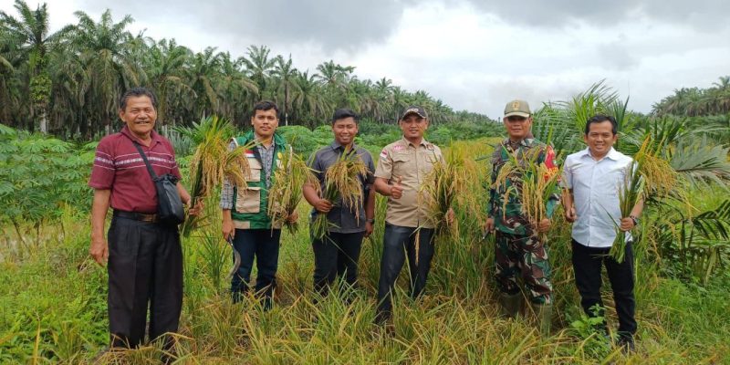 Tapung,- Dalam rangka mendukung program pemerintah di bidang ketahanan pangan, Sertu Sugiran Babinsa Koramil 16/Tapung Kodim 0313/Kampar bersama Pemerintah Desa dan petani melaksanakan kegiatan panen perdana padi gogo di lahan KUD Tani Makmur Mitra PTPN IV Regional III, Desa Sumber Makmur Kecamatan Tapung Kabupaten Kampar. Jum’at (09/01/2026).