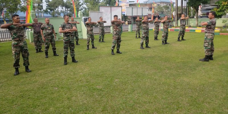 Jaga Kebugaran dan Tingkatkan Stamina, Anggota Koramil 01/Bkn Melaksanakan Pembinaan Fisik.