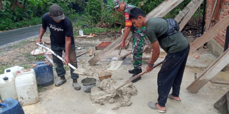 Tambang – Guna rangka untuk menjalin kemitraan serta sinergitas dalam kemanunggalan TNI bersama rakyat, jajaran Koramil 07/Kampar kembali ikut melaksanakan kegiatan gotong royong.
