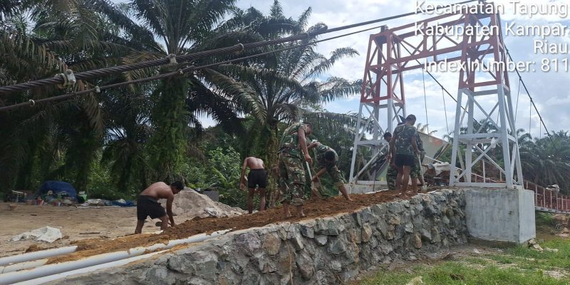 ​KAMPAR KIRI – Semangat membaja ditunjukkan oleh prajurit Kodim 0313/KPR dalam menuntaskan pembangunan Jembatan Gantung Garuda. Hingga Jumat (18/04/2026), infrastruktur vital yang menghubungkan Desa Batu Gajah dan Desa Kusau Makmur ini telah menyentuh progres 90%. Jembatan ini bukan sekadar konstruksi baja, melainkan “urat nadi” baru yang akan mengakhiri isolasi panjang warga di wilayah tersebut.