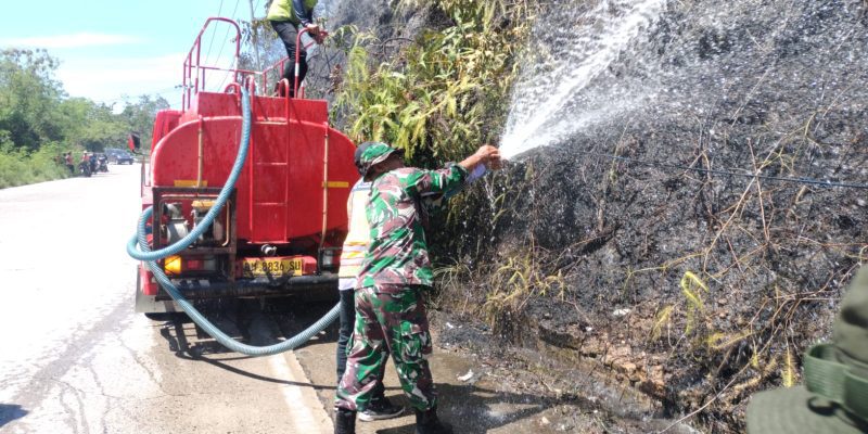 Petugas gabungan dan warga segera melakukan pemadaman manual.