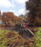 ‘Kami masih melakukan pendinginan. Kami juga telah membuat parit gajah untuk mengantisipasi jika api hidup kembali, karna lahan gambut, ujar Kopda Alesman.