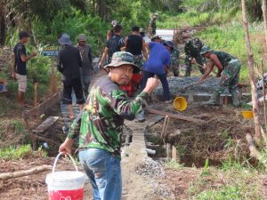 Antusias warga dusun III Teluk Punak bergotong royong bahu membahu melanjutkan pengecoran semenisasi jalan yang ada di dusun mereka bersama para anggota satgas TMMD yang tergabung dalam tiga Matra bersama anggota Polsek hari ini cukup memperlihatkan hasil yang cukup signifikan