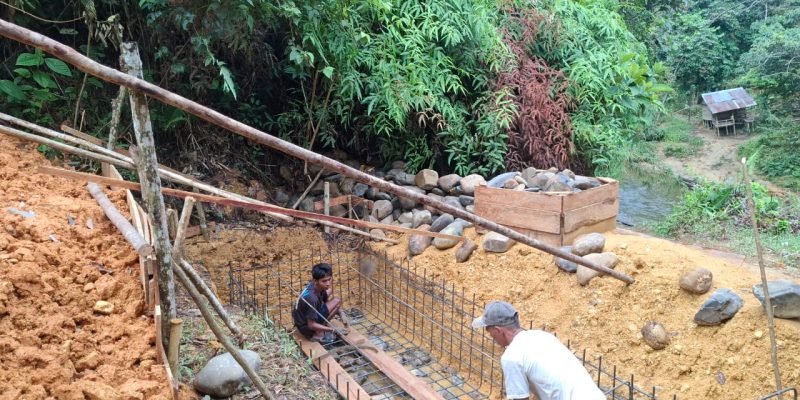 Logistik Sampan: Material bangunan harus diangkut menggunakan sampan dengan kapasitas terbatas (500 kg) melalui perjalanan air selama kurang lebih 1 jam.Setibanya di pinggir sungai, personel TNI dengan sigap memanggul material secara manual menuju titik pengerjaan.