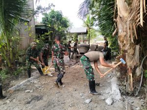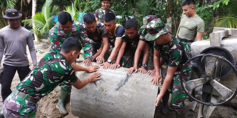 “Alhamdulillah, anggota Satgas TMMD yang bekerja rata rata masih muda dan kompak, sehingga pekerjaan gorong-gorong bisa terpasang sebagian tanpa ada kendala,” sehingga nantinya air yang berasal dari sungai ketika pasang bisa mengalir dan tidak merusak semenisasi Tegasnya kapten Arh H.Simbolon