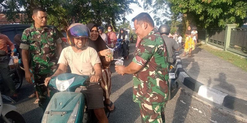 BANGKINANG, – 05 Maret 2026, Dalam rangka menyemarakkan bulan suci Ramadhan, Kodim 0313/KPR berbagi takjil gratis kepada warga dan pengguna jalan yang melintas di depan Makodim 0313/KPR. Kegiatan sosial ini digelar setiap sore menjelang waktu berbuka puasa guna menebar kebahagiaan serta mempererat silaturahmi dengan masyarakat sekitar.