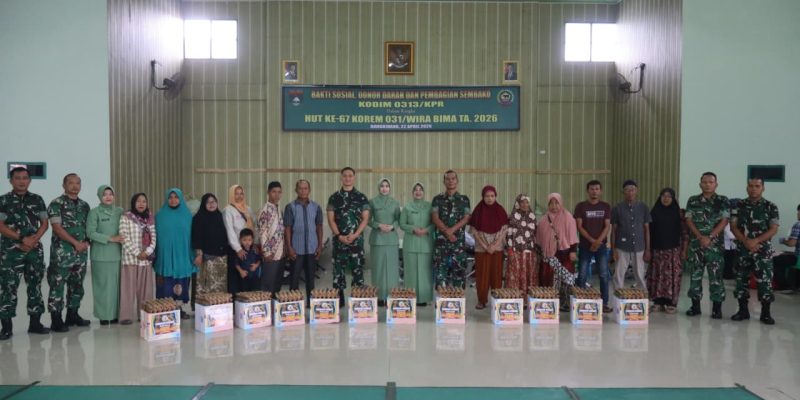 BANGKINANG, – Dalam rangka merayakan Hari Ulang Tahun (HUT) ke-67 Korem 031/Wirabuana (WB) Tahun 2026, Kodim 0313/KPR melaksanakan kegiatan bakti sosial berupa donor darah dan pembagian sembako pada hari Rabu, 22 April 2026 di Aula Kodim 0313/KPR.