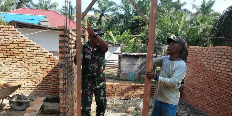 Rokan Hulu – Aksi terpuji dilakukan Kopda Budiyanto, personel Babinsa Koramil 10/Kunto Darussalam Kabupaten Rokan Hulu. Dia ikut membantu warga dalam membangun sebuah rumah.