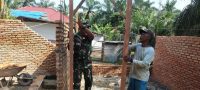 Rokan Hulu – Aksi terpuji dilakukan Kopda Budiyanto, personel Babinsa Koramil 10/Kunto Darussalam Kabupaten Rokan Hulu. Dia ikut membantu warga dalam membangun sebuah rumah.