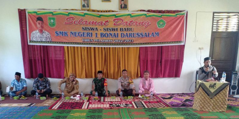 Rokan Hulu – Acara peringatan Maulid Nabi Besar Muhammad SAW, di Aula SMKN 1 Bonai Darussalam Desa Kasang Mungkal Kecamatan Bonai Darussalam Kabupaten Rokan Hulu di Hadiri Babinsa Koramil 10/Kunto Darussalam Kodim 0313/KPR Koptu Jantri Istani.