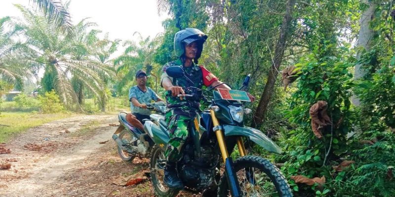 Rokan Hulu – Personil dari Babinsa Koramil 02 Rambah Kodim 0313/KPR Koptu Kurni Suhadi melakukan langkah pencegahan Karhutla, Selasa (10/6/2025).
