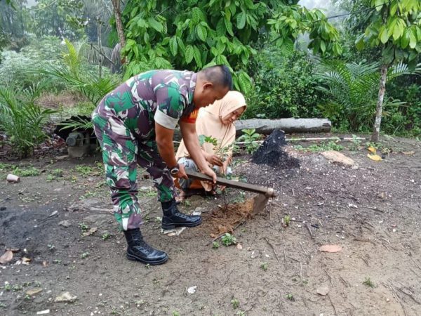Mendukung Program Pemerintah Untuk Menjaga Alam, Babinsa Koramil 16/Tapung Bersama Warga Tanam Pohon Penghijauan