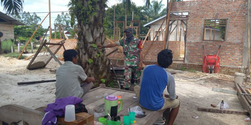 Manfaatkan Waktu Istirahat Kerja Bangun Rumah Warga, Babinsa Koramil 16/Tapung Laksanakan Komsos