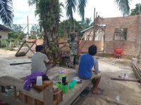 Seperti yang dilakukan Kopda Yayan Miaputra Babinsa Koramil 16/Tapung, Kodim 0313/Kampar melaksanakan Komsos dengan warga di saat istirahat membantu membangun rumah warga bertempat di Dusun Langgini Desa Batu Gajah, Kecamatan Tapung, Kabupaten Kampar. Senin (03/10/2022).