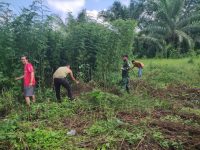 Rokan Hulu. Babinsa Koramil 11/Tambusai Kodim 0313/KPR Sertu Syahrizal Nasution dan masyarakat desa Tambusai Barat Kecamatan Tambusai Kabupaten Rokan Hulu melaksanakan kegiatan Komunikasi Sosial (Komsos) sembari melakukan kegiatan Gotong royong membersihkan semak belukar di seputaran Dusun Gunung Intan Desa Tambusai Barat. Sabtu (18/10/2025).
