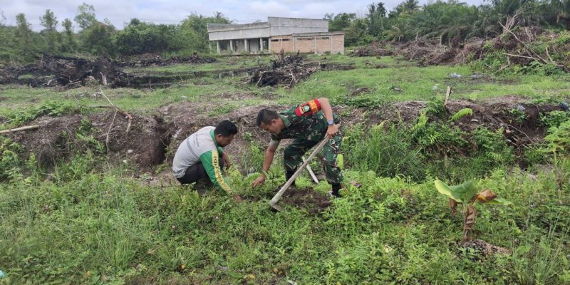 Tapung,- Menjaga keseimbangan ekosistem dan mencegah kerusakan lingkungan, Serma Ronnie Dastiano Ginting Babinsa Koramil 16/Tapung Kodim 0313/Kampar bersama bapak Arif melaksanakan penanaman pohon penghijauan jenis mangga bertempat di Desa Sari Galuh Kecamatan Tapung Kabupaten Kampar. Sabtu (04/10/2025).
