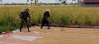 Pelalawan – Babinsa Koramil 15/Kk Kodim 0313/Kpr membantu petani yg sedang menjemur padi usai dipanen beberapa waktu lalu. Terlihat Babinsa Serda Vico ikut bersama bapak slamet (petani) menjemur padi di Desa Teluk Kecamatan Kuala kampar Kab. Pelalawan, Selasa (26/08/2025).