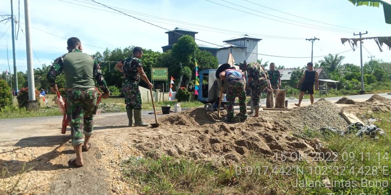 Teluk Punak – Kekompakan Satgas TMMD ke-115 Kodim 0313/KPR dan masyarakat Dusun III Teluk Punak Kecamatan Teluk Meranti Kabupaten Pelalawan terlihat jelas dalam mengerjakan program pembangunan pengecoran semenisasi pembuatan jalan.