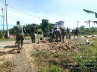 Cuaca panas terik sepanjang hari itu tidak sedikitpun menyurutkan tekat dan semangat mereka dalam bekerja. Satgas TMMD ke-115 Kodim 0313/KPR dan masyarakat tetap semangat, bergotong- royong.