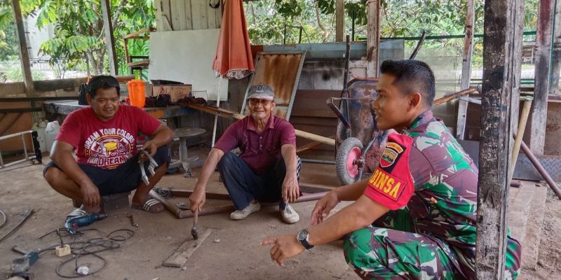 Tapung, – Serda Rohiyat Nuryanto Babinsa Koramil 16/Tapung Kodim 0313/Kampar melaksanakan komunikasi sosial dengan bapak Zainal, Selaku Pemilik Bengkel Las di Desa Petapahan Jaya, Kecamatan Tapung Kabupaten Kampar. selasa (18/10/2022).
