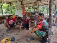 Tapung, – Serda Rohiyat Nuryanto Babinsa Koramil 16/Tapung Kodim 0313/Kampar melaksanakan komunikasi sosial dengan bapak Zainal, Selaku Pemilik Bengkel Las di Desa Petapahan Jaya, Kecamatan Tapung Kabupaten Kampar. selasa (18/10/2022).