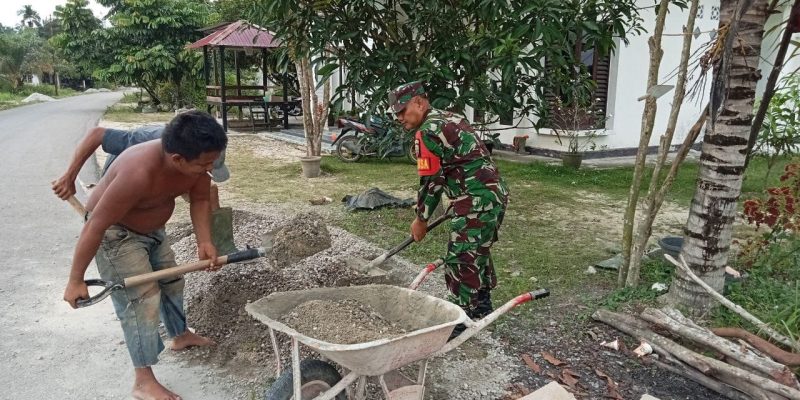 Rumbio Jaya – Bersama warga masyarakat di desa binaannya, Babinsa Koramil 07/Kampar Serka Yurinaldi melaksanakan kerja bakti Rehab Sekolah Dasar (SD) di Desa Tambusai Kecamatan Rumbio Jaya Kabupaten Kampar, Senin (09/03/2026).