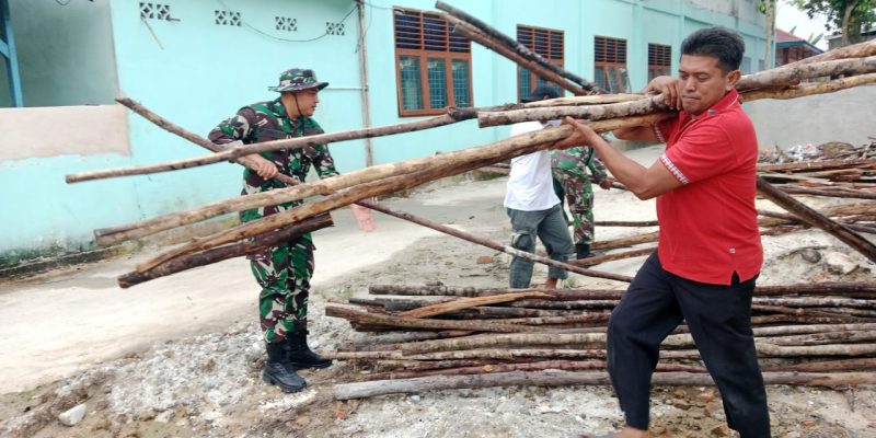 Rumbio Jaya – Bersama warga masyarakat di desa binaannya, Babinsa Koramil 07/Kampar Serka Yurinaldi melaksanakan kerja bakti Rehab Sekolah Dasar (SD) di Desa Tambusai Kecamatan Rumbio Jaya Kabupaten Kampar, Rabu (22/04/2026).