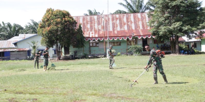 Persiapan Sambut Waaster Kasad, Tim Satgas Tmmd ke 115 Kodim 0313/Kpr lakukan pembersihan Lokasi Pendaratan Helipet