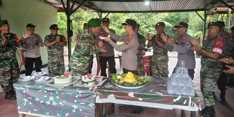 Kegiatan silaturahmi tersebut diakhiri dengan sesi foto bersama dan pemotongan tumpeng sebagai simbol kebersamaan dan rasa syukur atas bertambahnya usia TNI yang ke-80. Suasana penuh keakraban dan kekeluargaan tampak mewarnai acara, mencerminkan kuatnya komitmen TNI-Polri dalam mengabdi untuk bangsa dan negara.