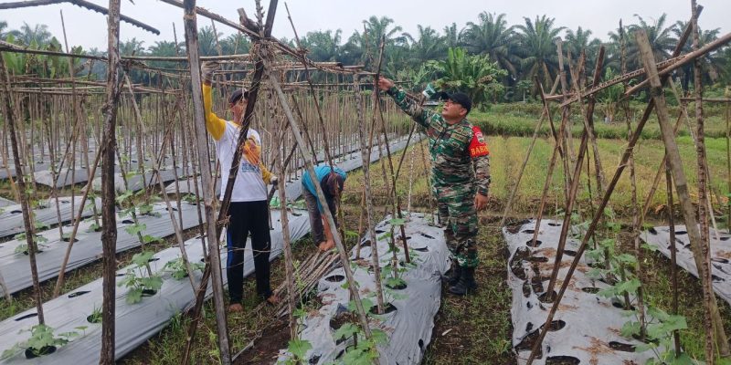 Babinsa mengatakan bersama petani merawat tanaman gambas, termasuk kegiatan seperti penyiraman, pemupukan, pengendalian hama, dan pembersihan gulma. Kegiatan ini bertujuan untuk meningkatkan hasil panen dan ketahanan pangan, serta memperkuat sinergi antara TNI dan masyarakat dalam sektor pertanian,” kata Babinsa.