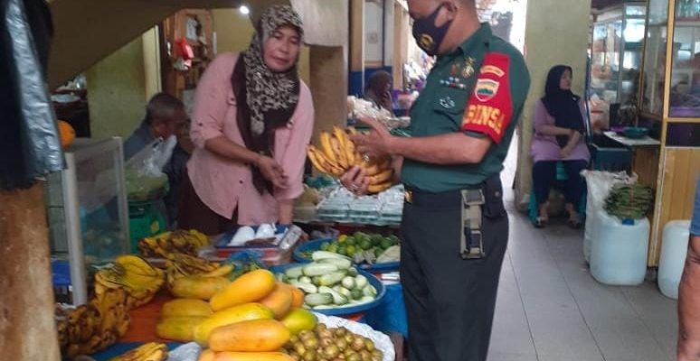 Babinsa Serka M Ramendra giat sambang di pasar Ramayana Bangkinag dan Sampari pedagang sayur sampaikan kamtibmas, jaga kebersihan dagangan sayuran nya agar para pembeli merasa puas dan senang berbelanja.