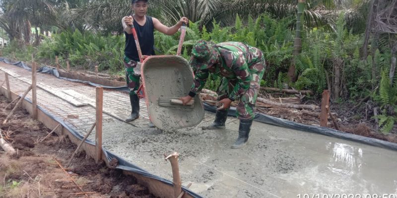 Teluk Meranti – Memasuki waktu lebih dari 10 hari program TNI Manunggal Membangun Desa (TMMD) ke-115 di wilayah Kodim 0313/KPR, progres pekerjaan fisik sudah mencapai 50 persen. Progres tersebut terjadi di pembangunan semenisasi jalan di sasaran 5 , Dusun Teluk Punak Kelurahan Teluk Meranti. Rabu 19/10/2022.