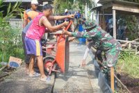 Teluk Punak – Personel Satgas TMMD ke 115 Kodim 0313/KPR dan masyarakat Teluk Punak tetap konsisten membantu sejumlah pekerjaan yang menjadi program sasaran fisik berupa semenisasi jalan yang berada di RT 14 RW. 07 Dusun III Teluk Punak Kel. Teluk Meranti Kac. Teluk Meranti Kab. Pelalawan. Jumat 14/10/2022.