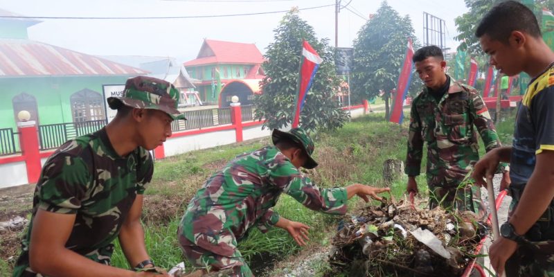 Teluk Meranti – Satuan Tugas (Satgas) Tentara Manunggal Membangun Desa (TMMD) Ke – 115 Kodim 0313/KPR tahun 2022 bersama warga Kelurahan Teluk Meranti membersihkan lingkungan Mushalla Al Qodir RT. 05 RW 08 Kelurahan Teluk Meranti Kecamatan Teluk Meranti. Minggu 16/10/2022.