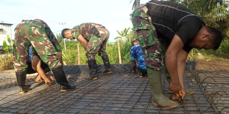 Teluk Punak -Satgas TNI Manunggal Membangun Desa (TMMD) ke-115 Kodim 0313/KPR bersama warga kembali lankutkan pekerjaan rangkai besi cor untuk jembatan dengan ukuran 3X6 Meter di RT 14 RW 07 Dusun Teluk Punak Kelurahan Teluk Meranti Kecamatan Teluk Meranti Kabupaten Pelalawan. Kamis 27/10/2022.