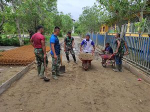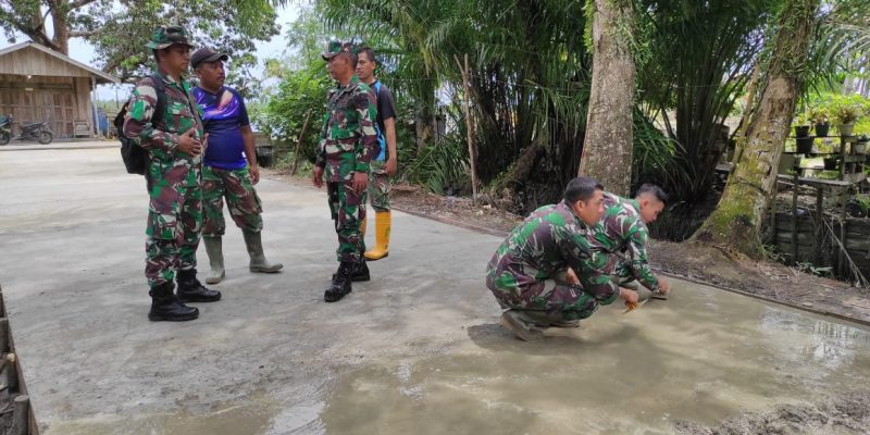 Teluk Meranti – Anggota Gabungan Satgas TNI Manunggal Membangun Desa (TMMD) Kodim 0313/KPR bersama masyarakat masih melanjutkan semenisasi kegiatan sasaran 4 di Jalan Pemuda dan Jalan Pesisir Kelurahan Teluk Meranti Kecamatan Teluk Meranti. Senin 17/10/2022