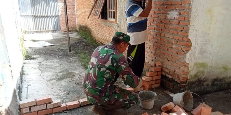 Kampa – Wujud kepedulian terhadap masyarakat di wilayah teritorial, Serda Eem Frince Babinsa Koramil 07/Kampar Kodim 0313/KPR melaksanakan giat bakti TNI membantu warga rehab rumah warga desa binaan di Desa Sawah Baru Kec. Kampa Kab. Kampar, Sabtu (18/04/2026).