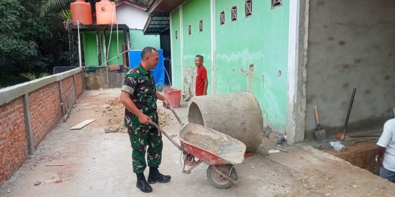 Kampa – Wujud kepedulian terhadap masyarakat di wilayah teritorial, Serda Eem Frince Babinsa Koramil 07/Kampar Kodim 0313/KPR melaksanakan giat bakti TNI membantu warga rehab rumah warga desa binaan di Desa Sawah Baru Kec. Kampa Kab. Kampar, Kamis (08/01/2026).