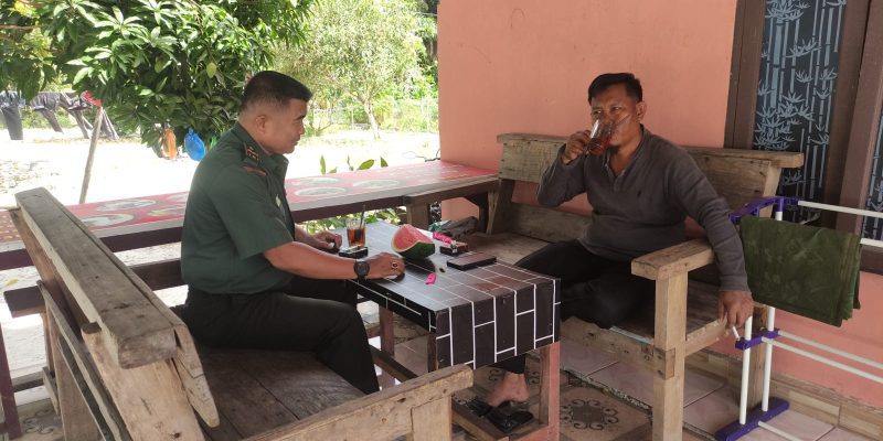 ROKAN HULU. Babinsa Koramil 11/Tambusai Kodim 0313/Kpr Pelda Syofyan kunjungi salah satu warung di wilayah Desa Bangun Jaya Kecamatan Tambusai Utara Kab. Rokan Hulu, ini merupakan tempat nimbrung warga di pagi hari sambil menikmati secangkir kopi, guna melaksanakan giat anjangsana bersilaturahmi dan berdialog dengan warga, Rabu (05/11/2025).