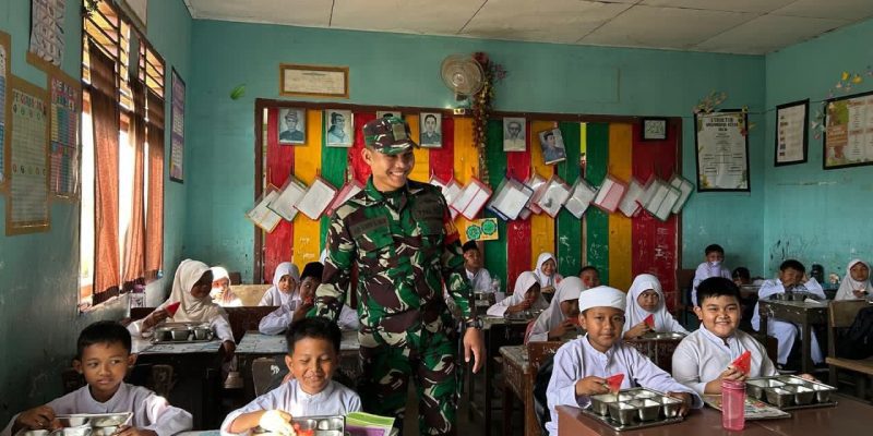 Rokan Hulu – Personel Babinsa Koramil 10 Kunto Darussalam Kodim 0313/KPR Serda Jefrijal melakukan monitoring terhadap pelaksanaan penyaluran Program Makan Bergizi Gratis (MBG) yang disalurkan oleh Badan Gizi Nasional (BGN) kepada para siswa dan siswi di sejumlah sekolah dalam wilayah teritorialnya.