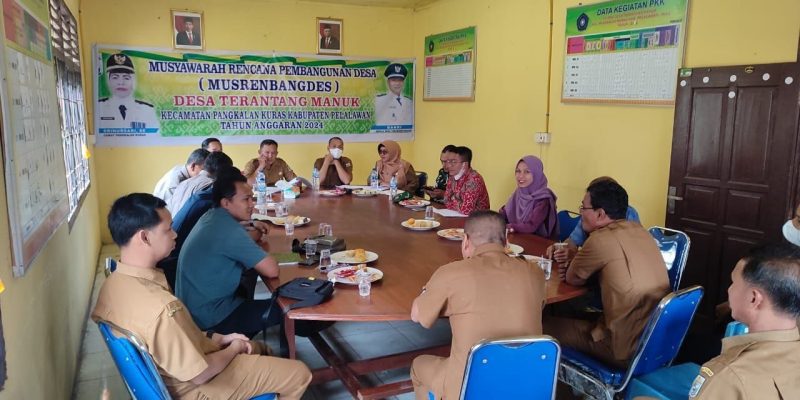 Pangkalan Kuras, Babinsa Koramil 04/Pkl.Kuras Kodim 0313/Kpr Sertu Yurinaldi dalam kesempatan menghadiri Acara Musyawarah Rencana Pembangunan Desa (MUSRENBANGDES) Tahun Anggaran 2024 di Kantor Desa Terantang Manuk Kecamatan Pangkalan Kuras Kabupaten Pelalawan, ( Rabu,25/1/2023).